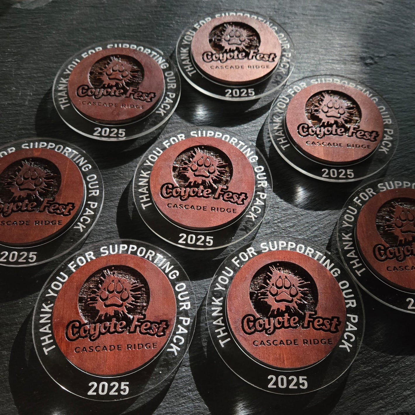 Custom designed and fabricated wood and acrylic magnets for a school fundraiser